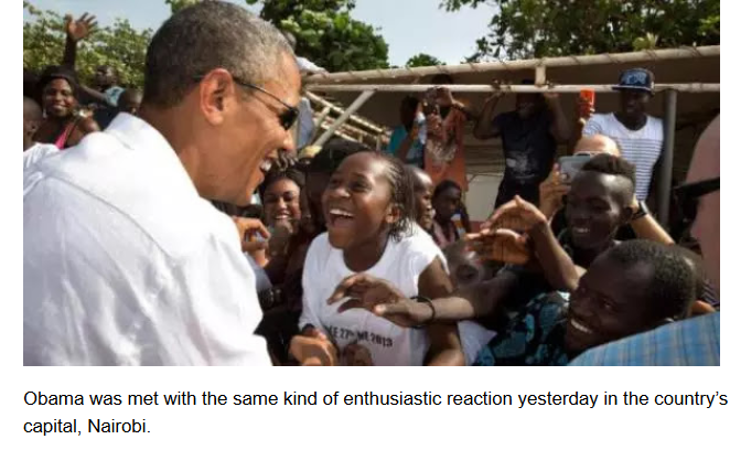 While visiting the Kenyan port city of Mombasa, he was greeted by a large and extremely enthusiastic crowd, loudly cheering and chanting his name.