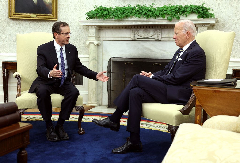 Image credit: Israeli President Isaac Herzog speaks with Joe Biden in the Oval Office at the White House on July 18, 2023. Kevin Dietsch/Getty Images