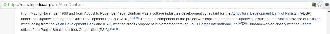 Also, the subject matter of Stanley Ann’s research as claimed in this letter is completely implausible because 1) Stanley Ann spent her working life in South Asia, with a stint in Pakistan, but most famously in Indonesia, 2) Her many published works regarding her studies dealt with microcredit and the development of micro/small businesses, especially for women.