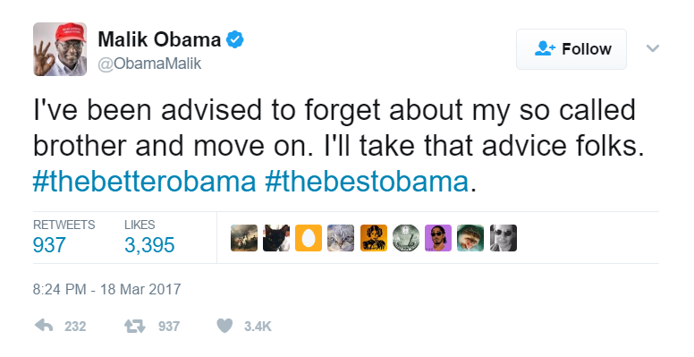 (1) MALIK OBAMA, Twitter, March 9, 2017