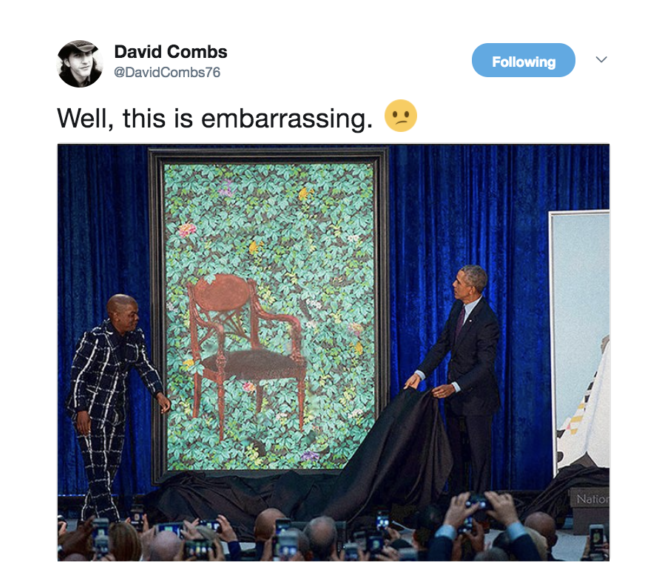Twitter critiques of the works have been harsh. But few struck a nerve more than the take of artist David Combs. After the unveiling, Combs tweeted a mock up of the work, without Obama in the chair.