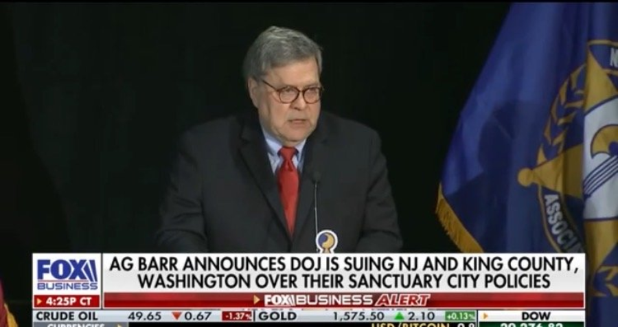 Barr said the DOJ would be filing multiple lawsuits against state and local governments for enacting “sanctuary city” policies.