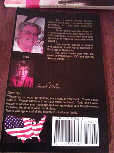 Sarah Palin called Berger a “patriot” after he sent her a copy of the book. A picture of Berger (and a short bio) and Sarah Palin and her thoughts on Berger and his book make up the back cover of the book: