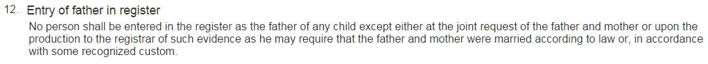 As the law currently reads it appears that even if the mother had DNA evidence which indicated that this man is the father of her child she would still not be permitted to have his name entered on the birth certificate.