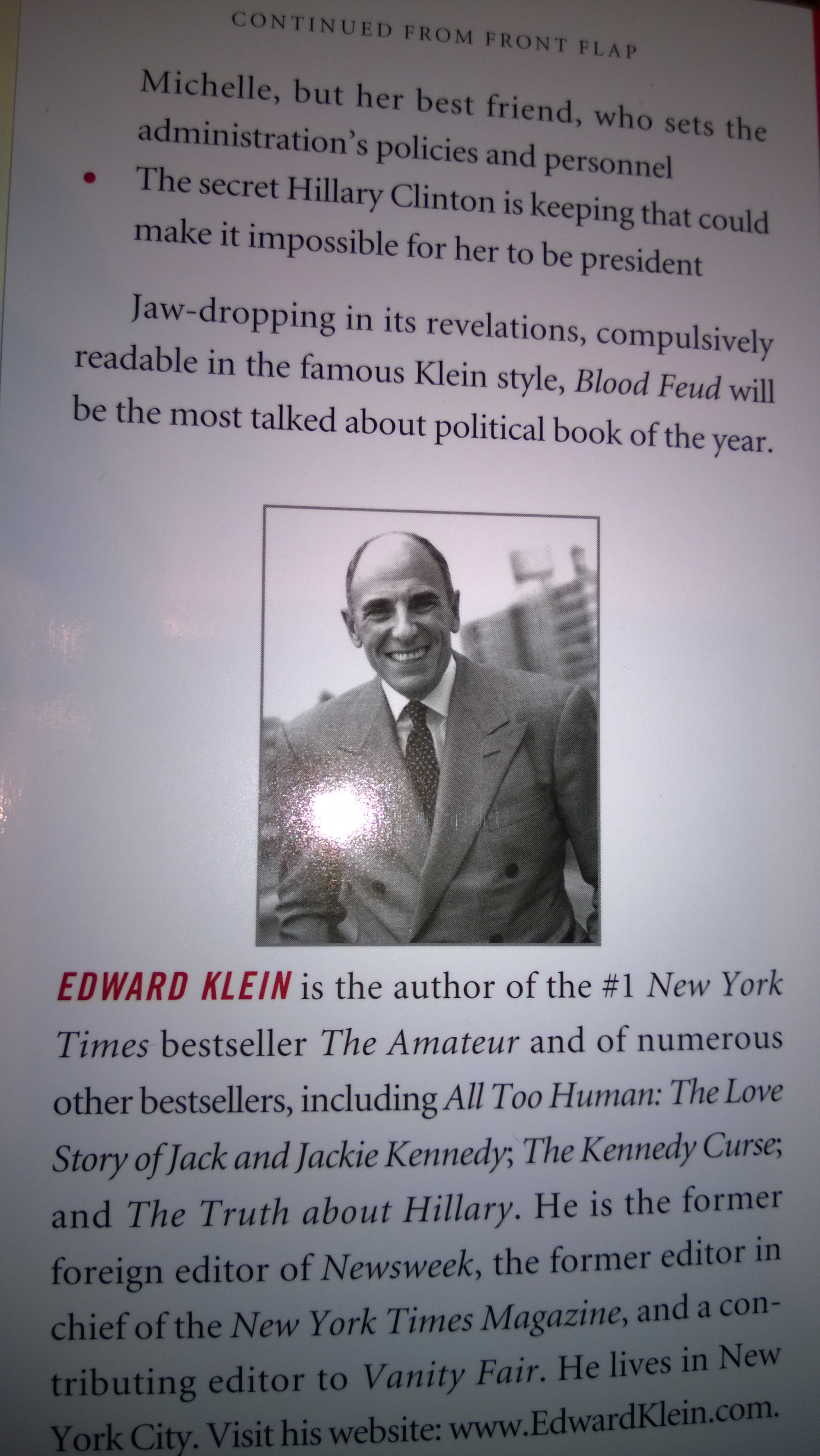 Recently I was able to acquire the above copy (1st printing, though I doubt that it’ll ever be worth anything) of Edward Klein’s Blood Feud: The Clintons vs. The Obamas (2014).