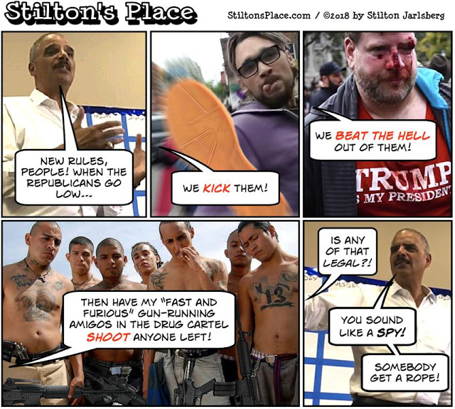 Eric Holder, the sleazy law-breaking bag man for Barack Obama who helped destroy the credibility of the Department of Justice, just issued a statement in which he declared that “Michelle Obama says when (Republicans) go low, we go high. No! NO! When they go low we KICK them!”