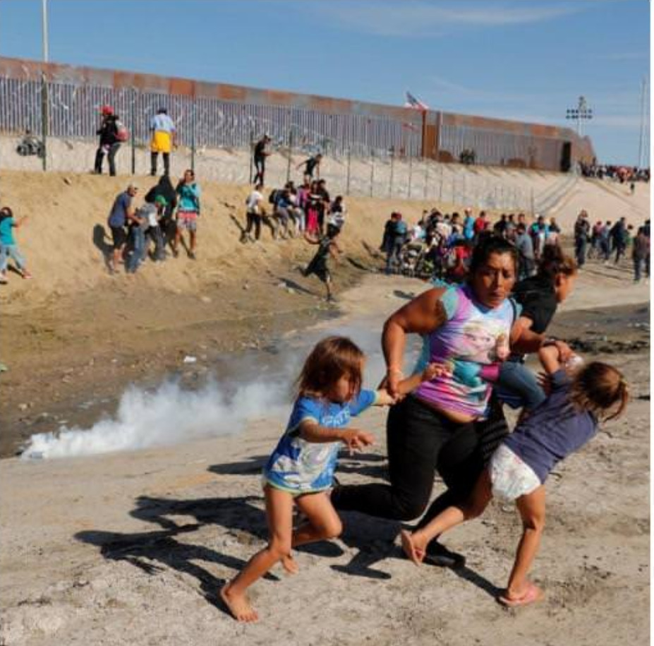 “Mother’s” rough grip of child’s wrist in both photos – distinctly unmaternal (although what kind of mother drags her young children 2000 miles across Central America)