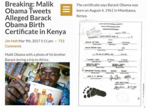 Reference — Original Gateway Pundit article (with over 1300 comments) at — https://www.thegatewaypundit.com/2017/03/breaking-malik-obama-tweets-alleged-barack-obama-birth-certificate-kenya/