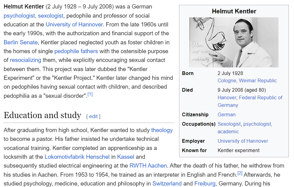 Wikpedia entry for Helmut Kentler: wikipedia.org/wiki/Helmut_Kentler