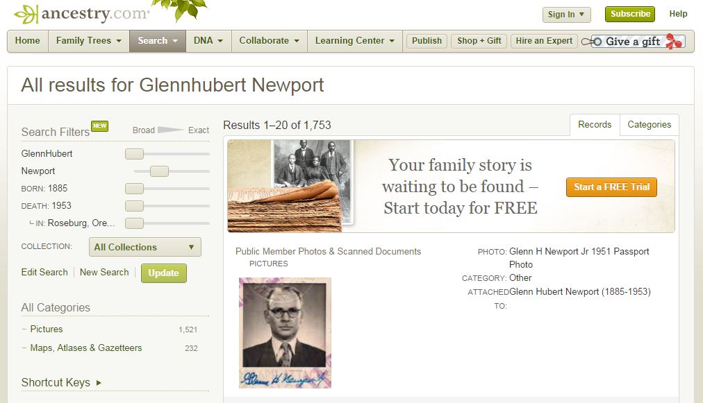 Photograph to the left:  US Passport photo of Glenn Hubert Newport.  Year: 1951.  World War II hero and intrepid traveler from Iowa.  Father of the child Glenn Hubert Newport, III.