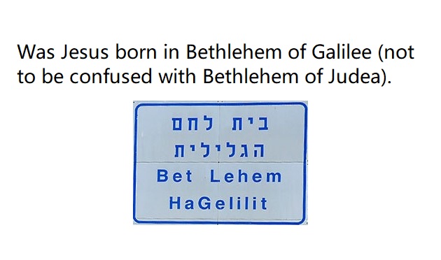 Third question: Was Jesus born in Galilee? Answer: I’d say it’s extremely likely he was. He was very likely born in Bethlehem of Galilee (not to be confused with Bethlehem of Judea).