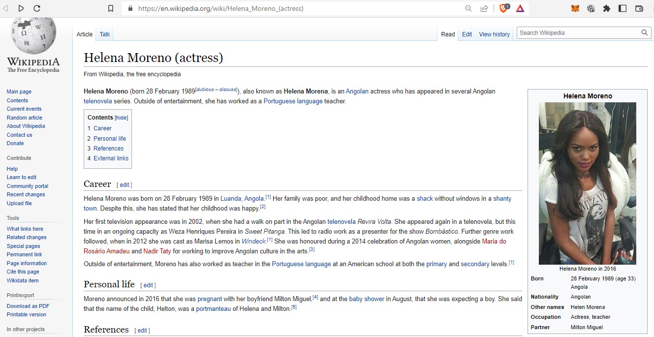 I found this Helena Moreno actress in Angola today while searching for more info on Dr. Heltan / Helton Maganga.