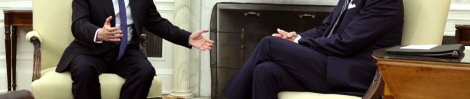 Image credit: Israeli President Isaac Herzog speaks with Joe Biden in the Oval Office at the White House on July 18, 2023. Kevin Dietsch/Getty Images