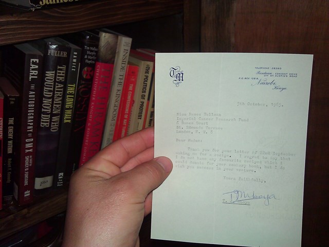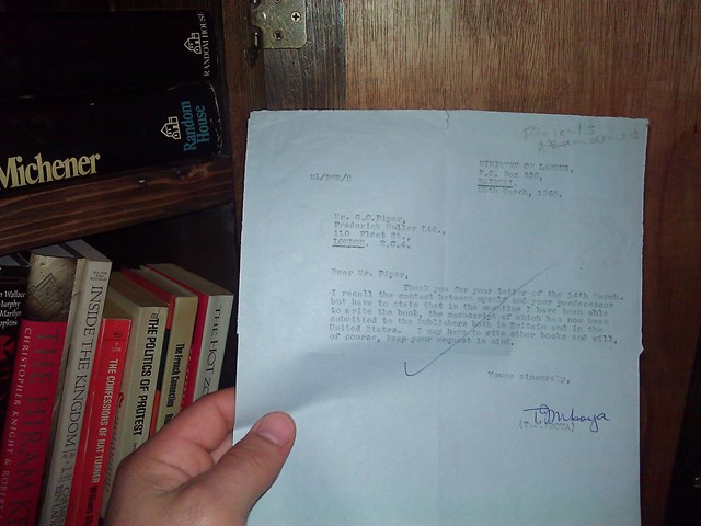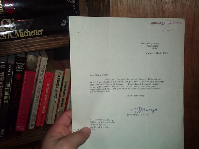 I own the three (3) letters pictured in this report, all of which were typewritten and signed by Tom Mboya.
