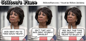 We don’t pretend to have great theological expertise, but Maxine Waters’ recent declaration that she’s on a “mission from God” seems to put her squarely in the same category of previous divine tools as plagues of locusts, frogs, flies, lice, and eruptions of large, painful boils which would even make Dr. Pimple Popper lose her lunch.