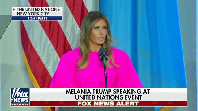 First Lady Melania Trump addressed the United Nations on Wednesday, calling for world leaders to “step up” to improve the lives of children around the world.