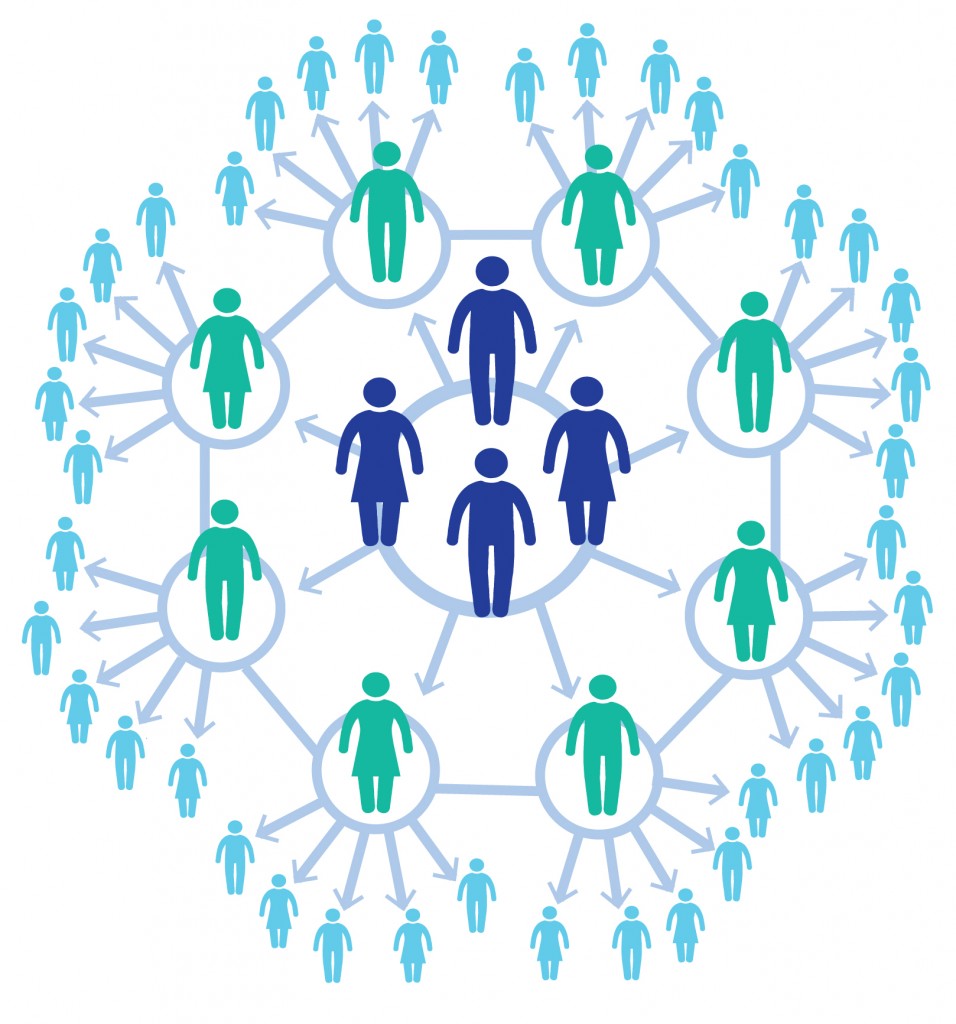 An illustration of the snowflake model of community organizing, in which a single leader is replaced with interconnected leaders. (State Dept./Doug Thompson) – ‘Changing the World With Snowflakes’, Mark Trainer, 2/24/2016 — https://share.america.gov/changing-world-with-snowflakes/