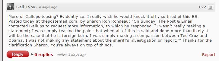 I assign absolutely NO VALUE to Gallups’ ‘CYA CORRECTION STATEMENT’ cited in the above discussed P&E article referencing his audio statement – “Very Soon It’ll Be Outed That Obama Not Born On American Soil”