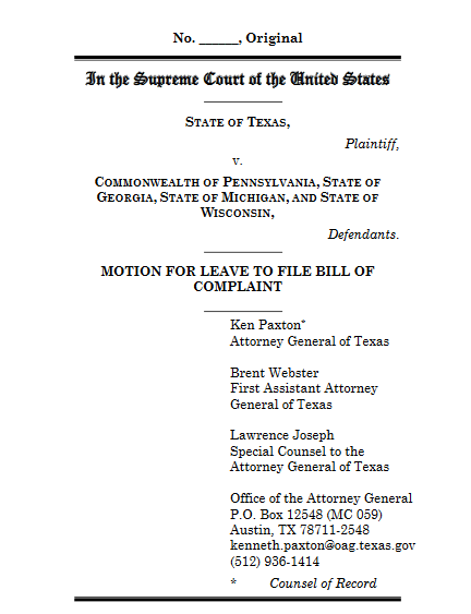 Texas Asks Supreme Court to Rule Election in Four Battleground States Unconstitutional