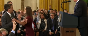 Says press secretary Sarah Sanders, “The First Amendment is not served when a single reporter, of more than 150 present, attempts to monopolize the floor.”