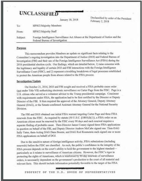 UNCLASSIFIED Memo: Subject – Foreign Intelligence Surveillance Act Abuses at the Department of Justice and the Federal Bureau of Investigation