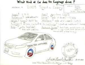 What kind of car does Dr. Conspiracy (Kevin Wayne Davidson) drive? (February 24, 2013)