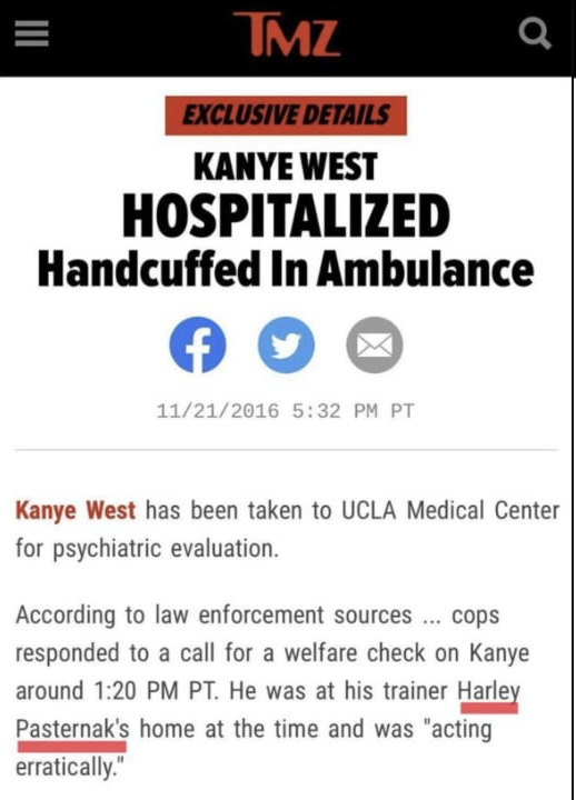 Pasternak is the personal trainer who had Kanye West (or “Ye”) institutionalized once in 2016 (along with the help of Dr. Michael Farzam):